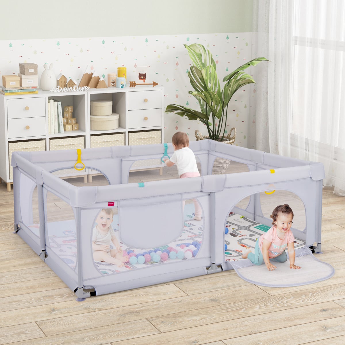 Unlimited Enjoyment: 1 practical storage bag offers enough storage space for baby essentials. 4 pull rings assist your little one to practice standing, which frees parents’ hands. Moreover, the playpen also comes with 50 ocean balls to provide kids hours of fun.